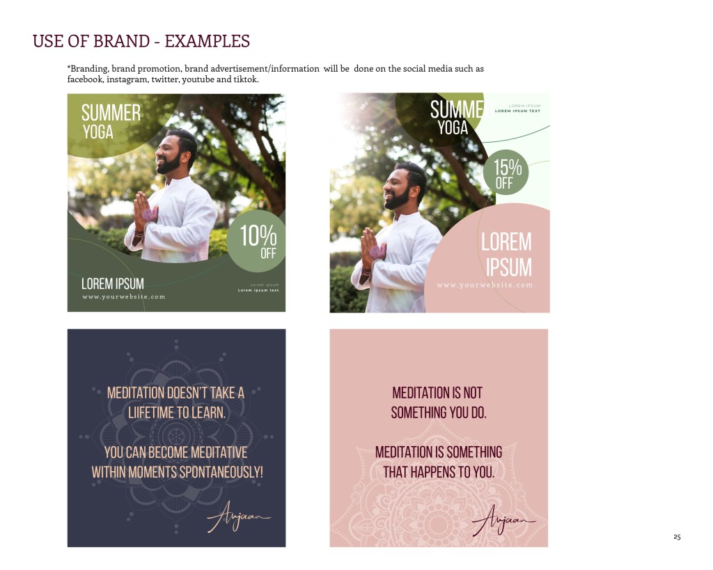 Brand Book Brand Book created for a Life coach and Yoga/Spiritual mentor ‘MeditateWithAnjaan’ Share this: Share on X (Opens in new window) X Share on Facebook (Opens in new window) Facebook Like Loading... Related