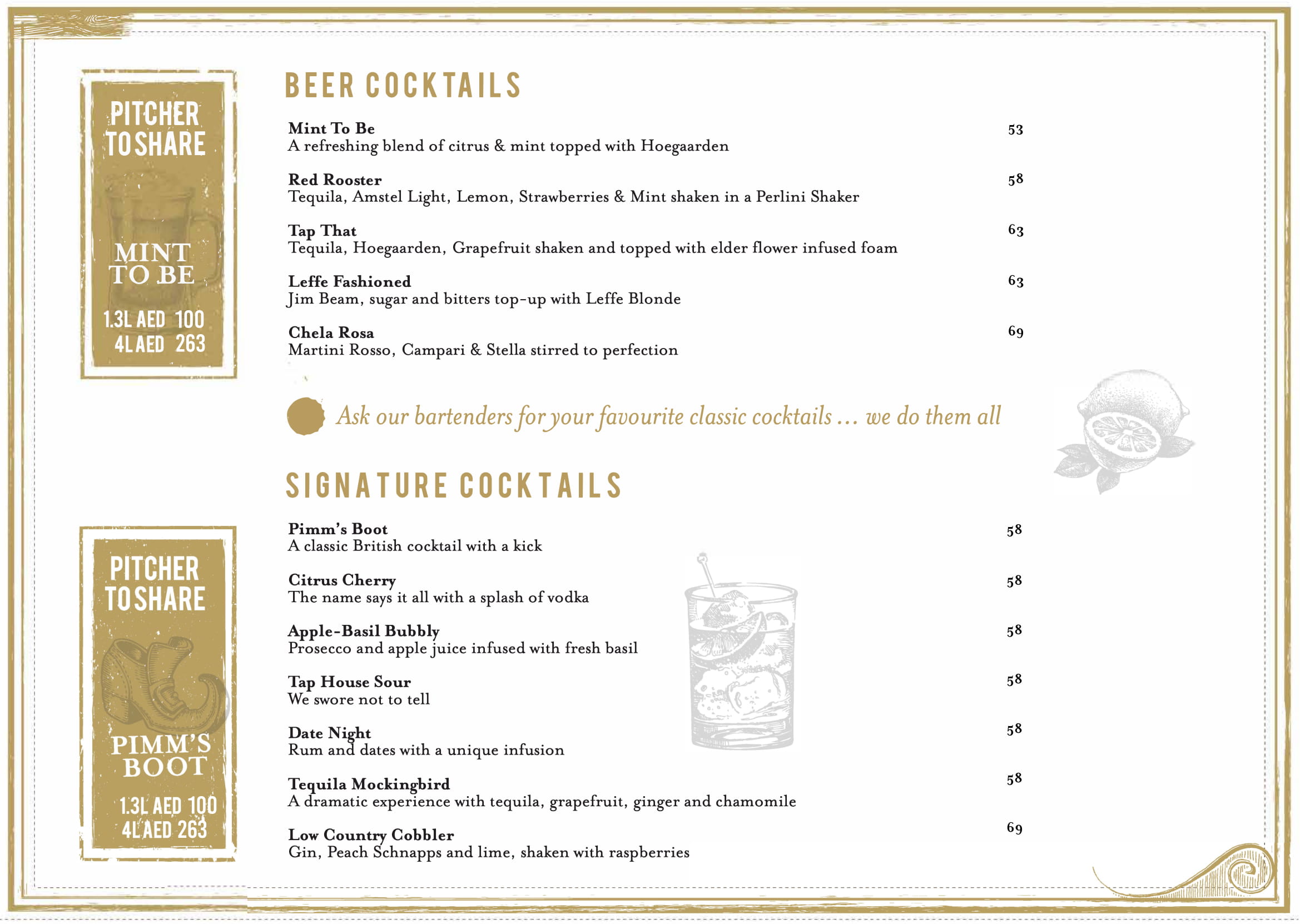 The above menu was designed for The Tap House restaurant in Dubai. I have designed and created this themed menu during my employment at Royal Orchid Hospitality Group. It is 260 mm by 260 mm printed hard copy menu given out to the customers at the restaurant.